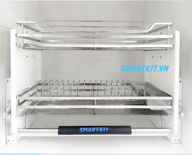 GIÁ ĐỂ BÁT ĐĨA DI ĐỘNG NÂNG HẠ INOX 304 NAN VUÔNG KHAY HỨNG NƯỚC BẰNG INOX CÓ ỐNG ĐŨA